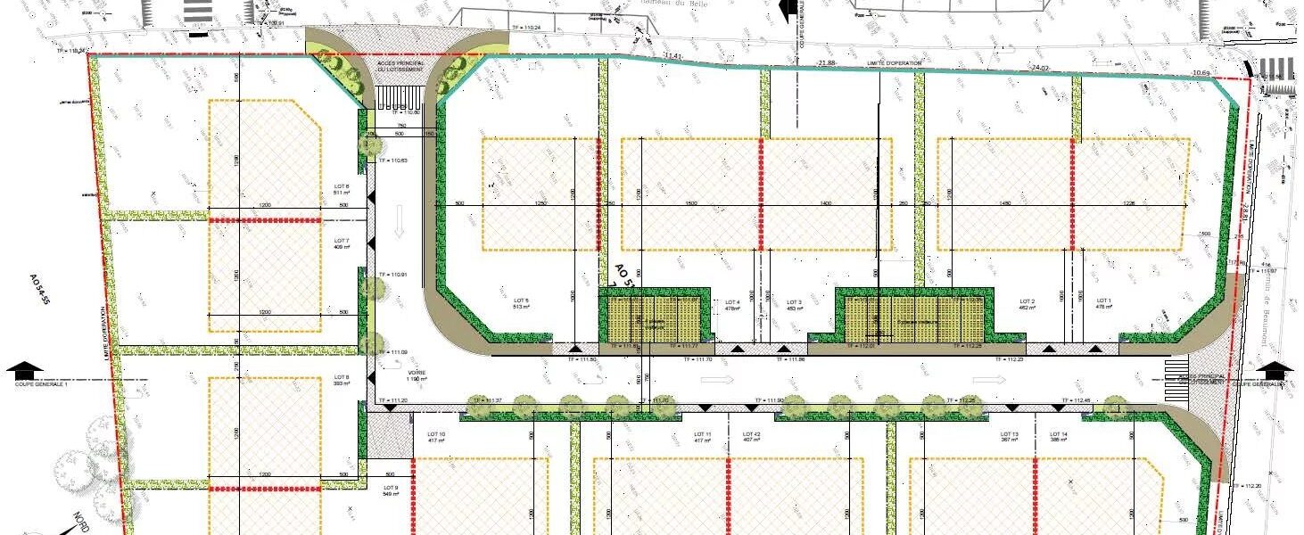 14 terrains à bâtir viabilisés de 367 m² à 549 m².