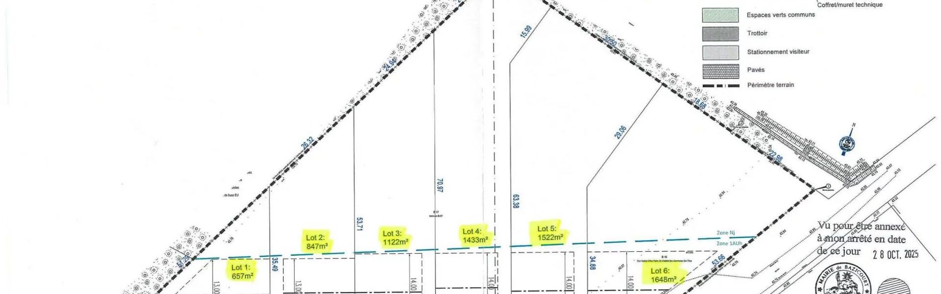 Surface des terrains de 657 m² à 1 648 m²