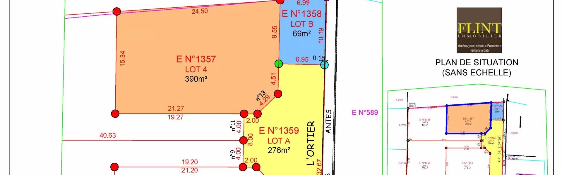 4 terrains à bâtir viabilisés de 390 m² à 536 m².